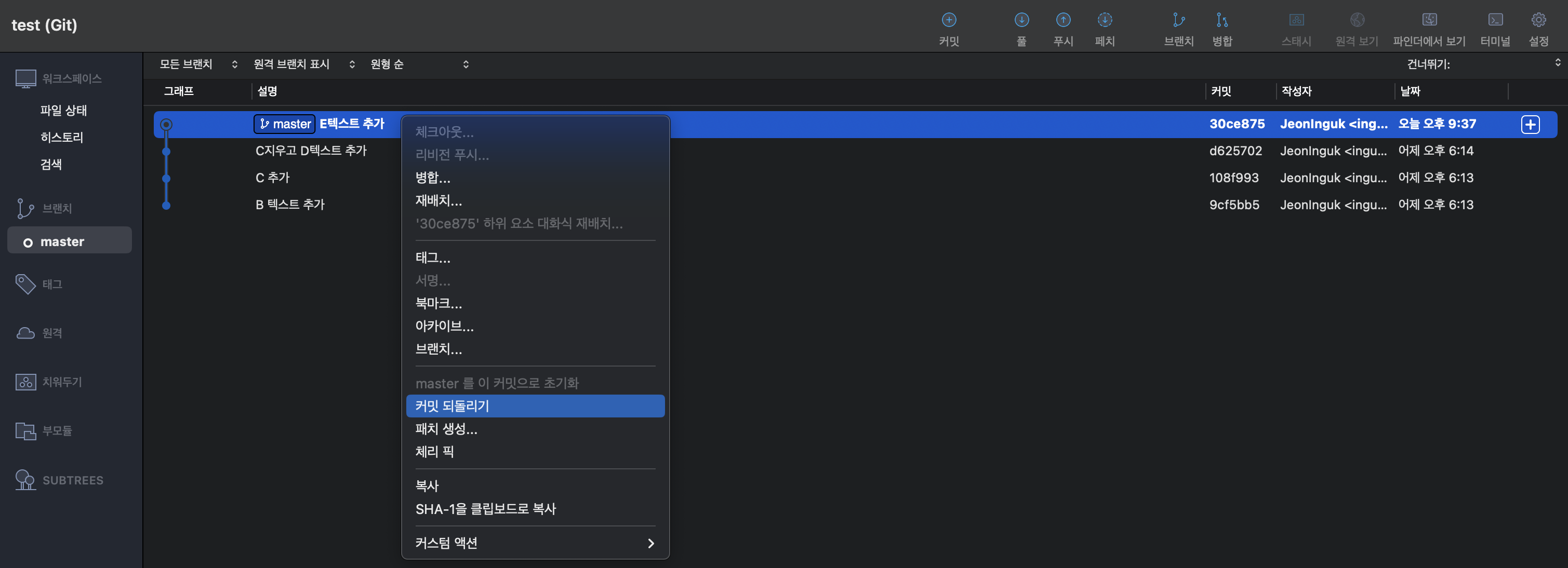 버전을 완전히 되돌리기(시간을 되돌리듯이)