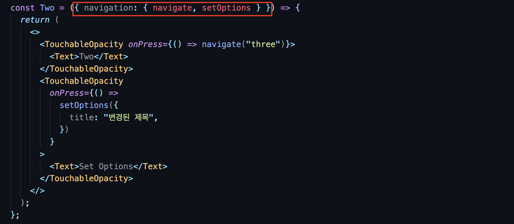 const Two = ({ navigation: { navigate, setOptions } }) => {