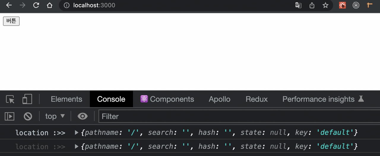 react-router-dom을 사용하면, 우리는 우리가 현재 위치하고 있는 페이지의 여러가지 정보를 추가적으로 얻을 수 있습니다. 이 정보들을 이용해서 페이지 안에서 조건부 렌더링에 사용하는 등, 여러가지 용도로 활용할 수 있습니다. 사용방법은 아래 코드를 참고해주세요.