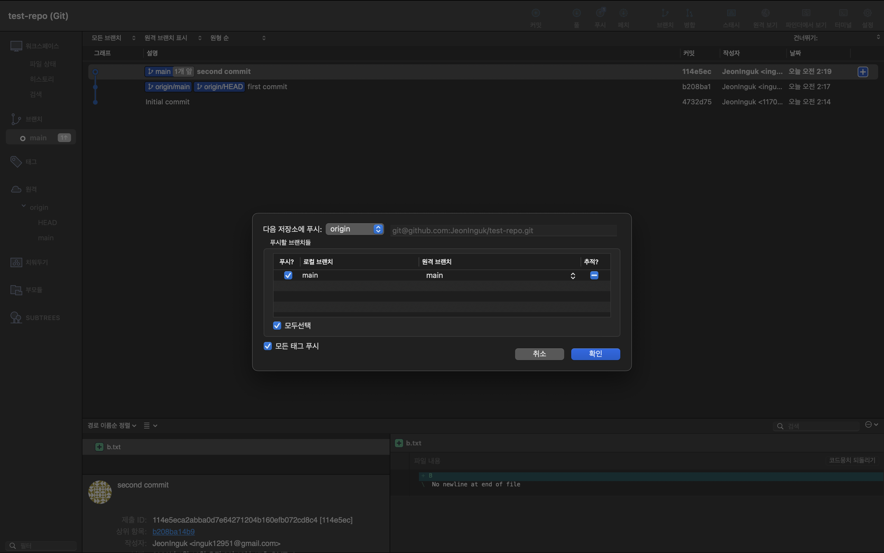 - 정상적으로 원격 레파지토리에 추가된 것을 볼 수 있다!