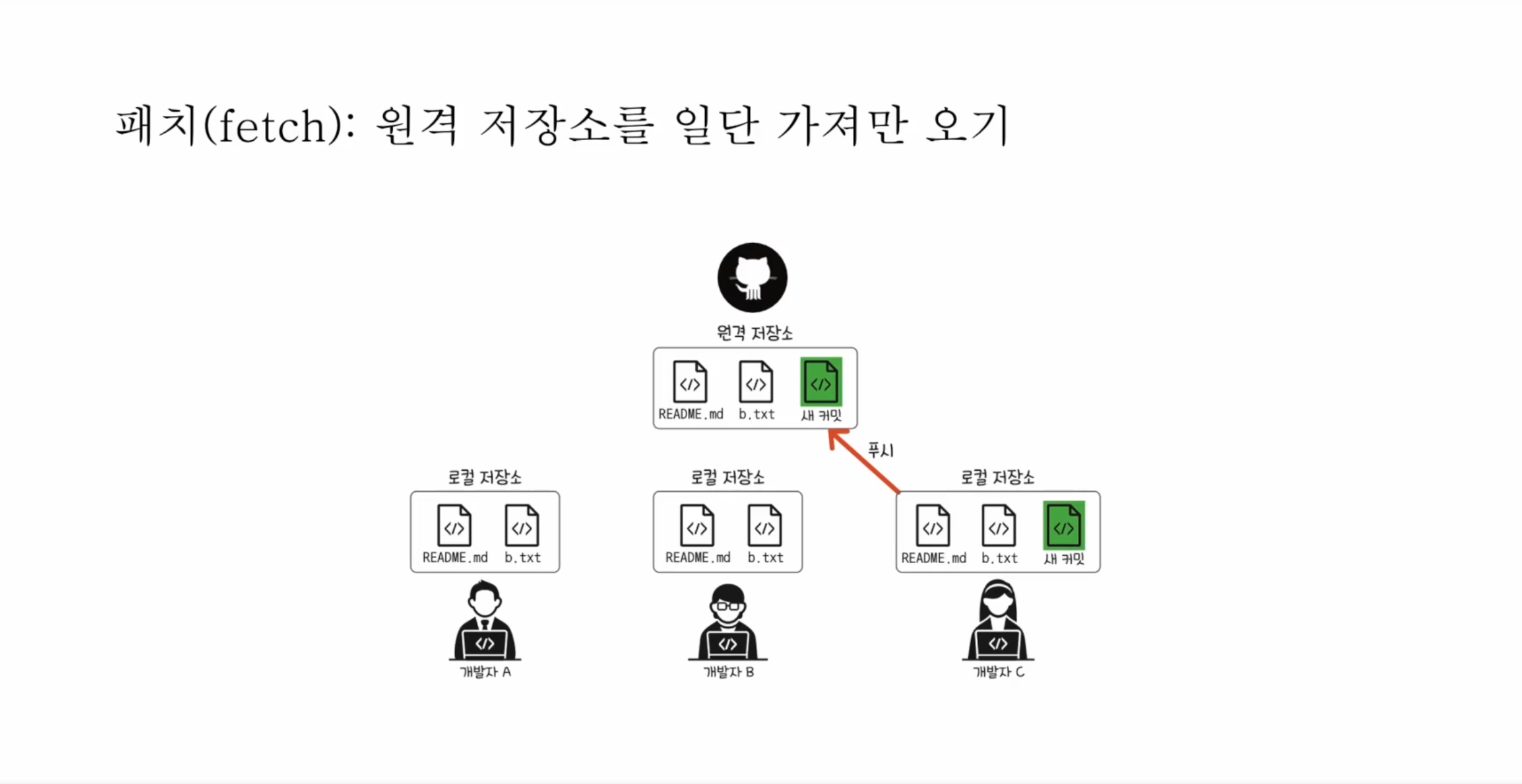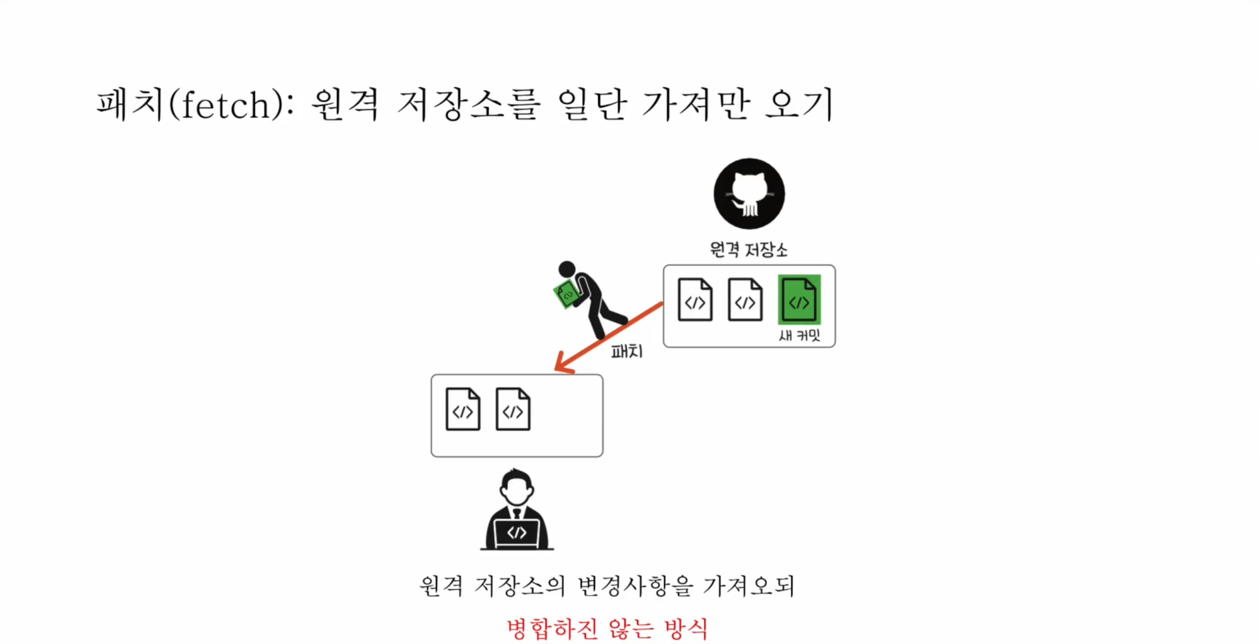 패치(fetch): 원격 저장소를 일단 가져만 오기