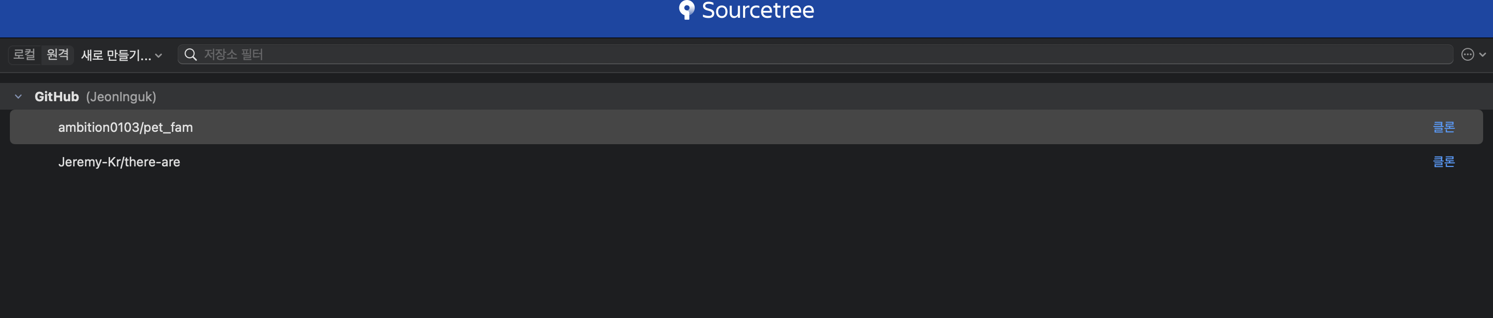 - 원격 탭으로 가서 전에 생성해둔 repository가 정상적으로 보이는지 확인해보자. 잘 보인다면 성공!