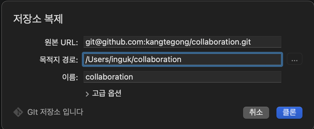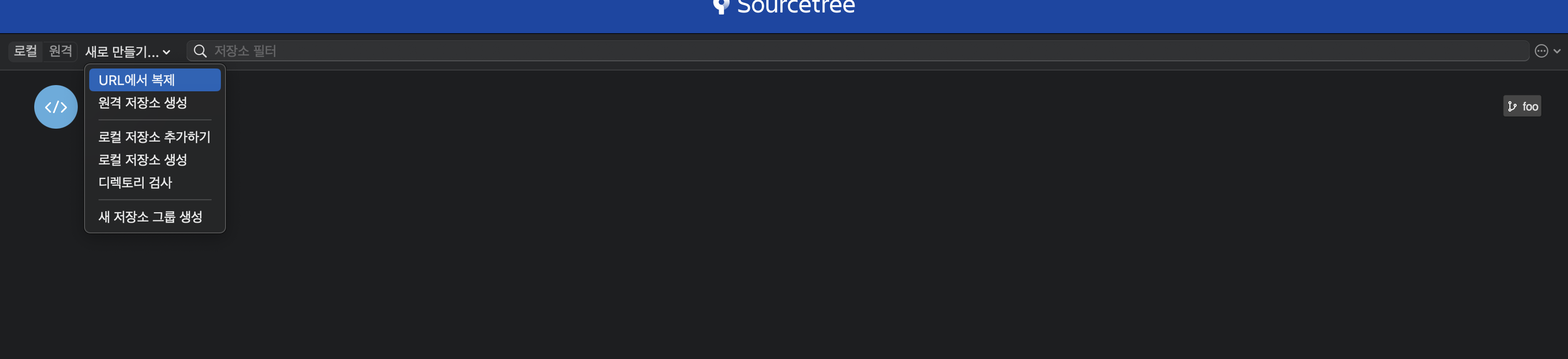 - 목적지 경로와 이름은 소스트리에서 자동으로 생성해준다.