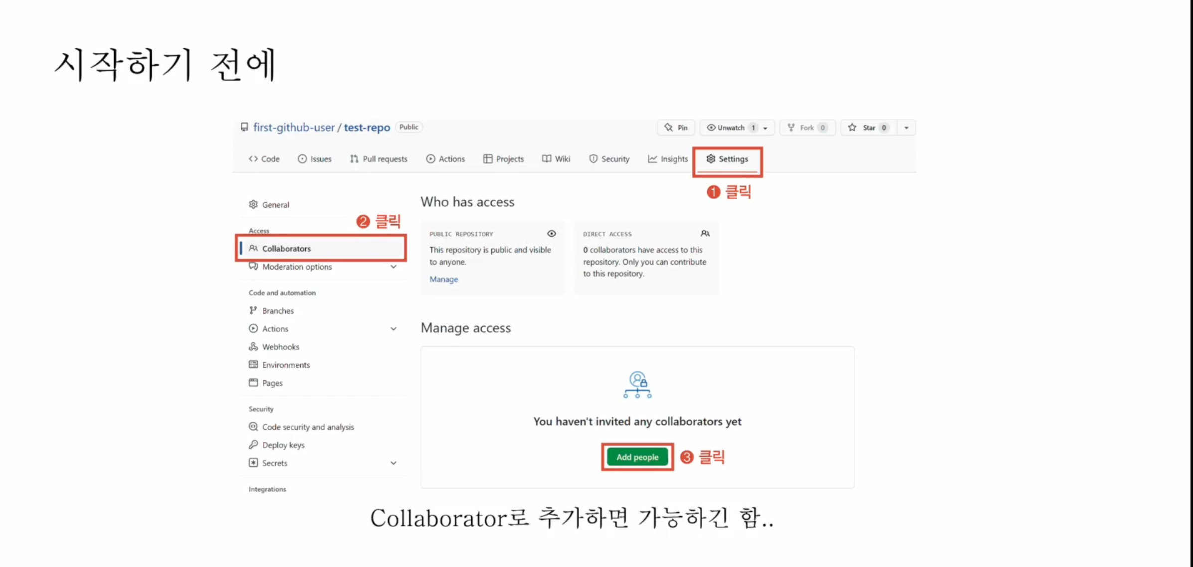 - 이러한 포크해온 작업물에서는 푸시가 가능하기때문