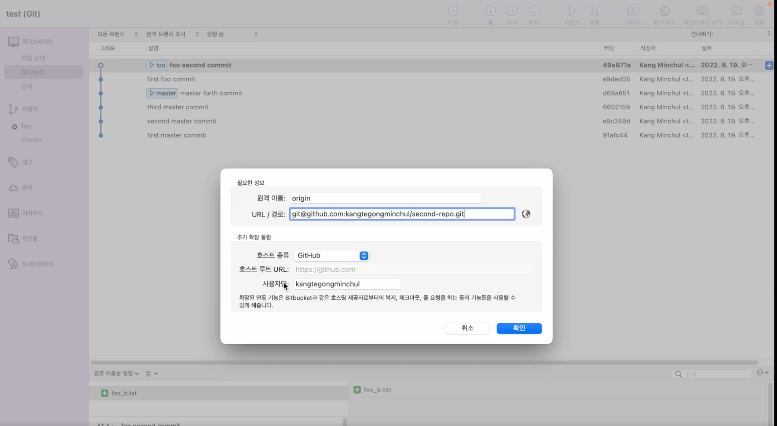- 원격 이름을 origin으로 설정 후 복사한 SSH를 URL/경로에 붙여넣기하기