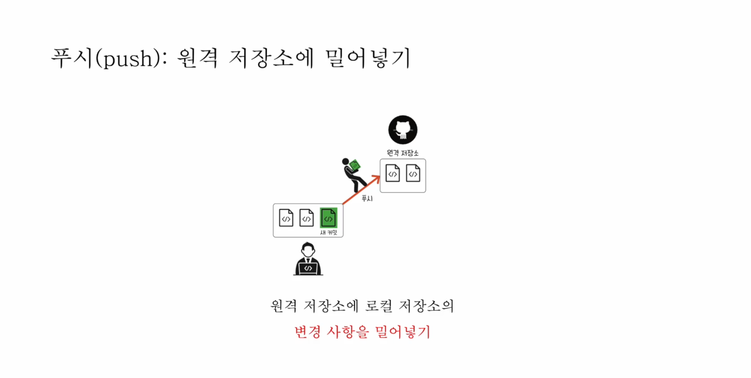 푸시(push): 원격 저장소에 밀어넣기 - 일종의 업로드