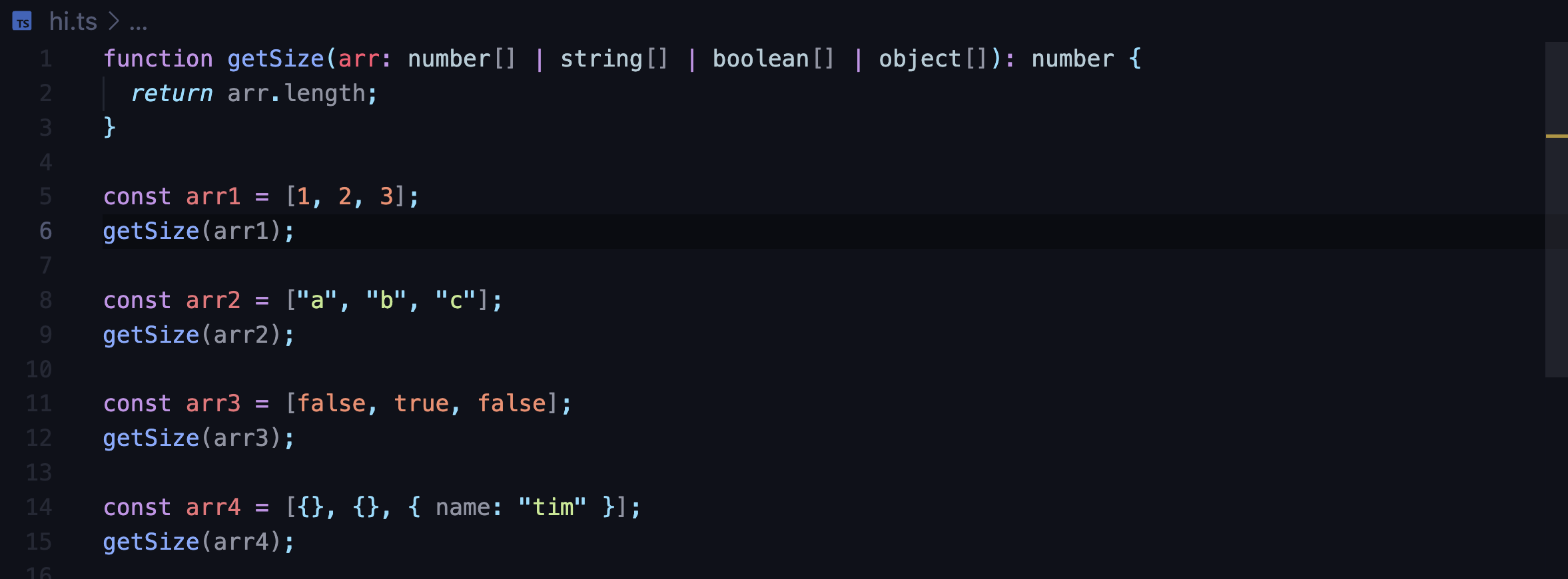 function getSize<T>(arr: T[]): number {