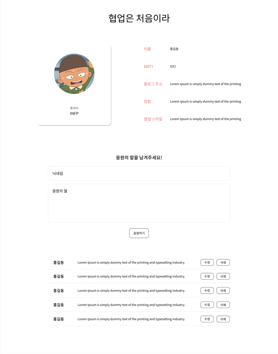 오늘은 프로젝트를 위해 어제 피그마로 작성한 와이어프레임을 직접 코드로 구현하는 작업을 했다.