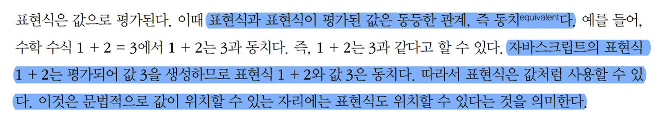 연산이 이루어지지 않더라도 값으로 평가될 수 있는 리터럴은 표현식이 맞습니다.