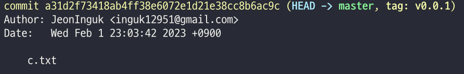 - 다음과 같이 해시태그를 작성하지않으면 git log의 가장 최신commit에 태그가 부여된다.