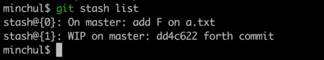 - 가장 최근에 추가한 stash일수록 가장 낮은번호가 된다. 즉 0번이 된다.