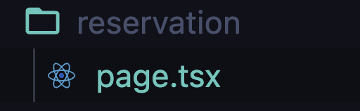 파일명은 page.tsx이지만, 그 파일안에 작성된 컴포넌트명은 "ReservationPage"이다. 파일명에 주의하자.