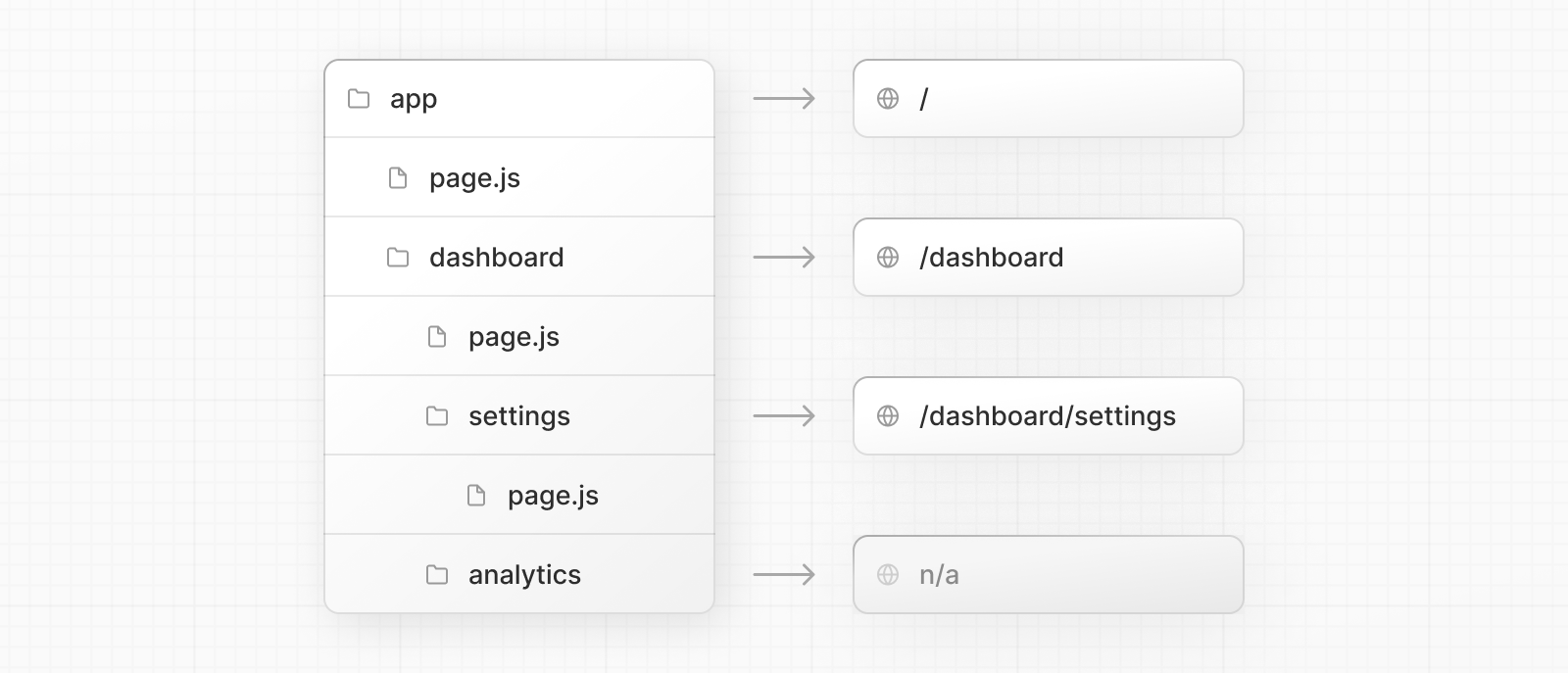각 폴더는 URL 세그먼트에 매핑되는 경로 세그먼트를 나타냅니다. 중첩된 경로를 만들려면 폴더를 서로 중첩할 수 있습니다.