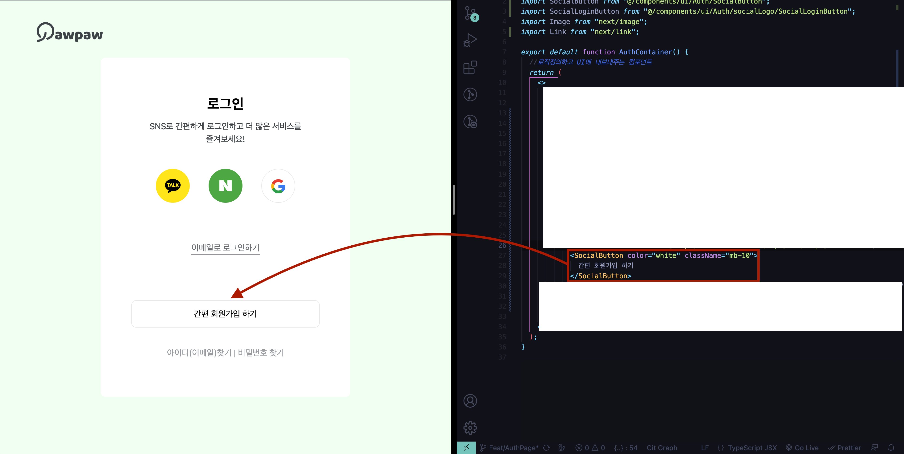 팀원분은 flex에 자주 쓰이는 설정들이나 공용에서 쓰이는 버튼같은 것들을 따로 묶어 컴포넌트화하셨는데 나도 마침 로그인페이지에 적용할 구실이 생겨서 연습해봤다.