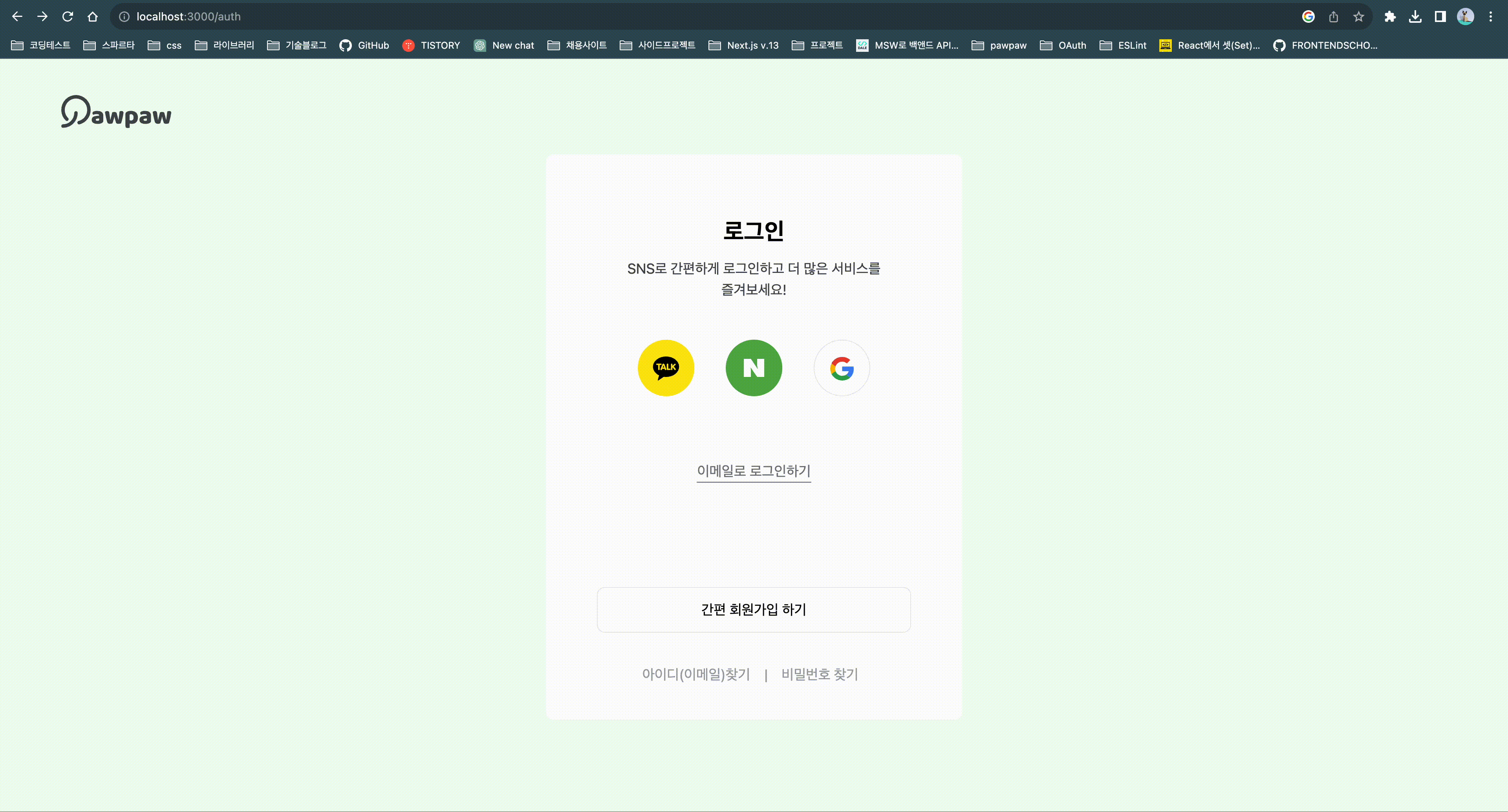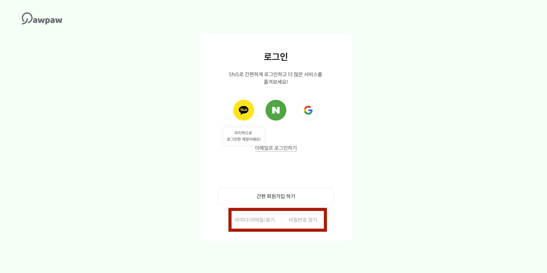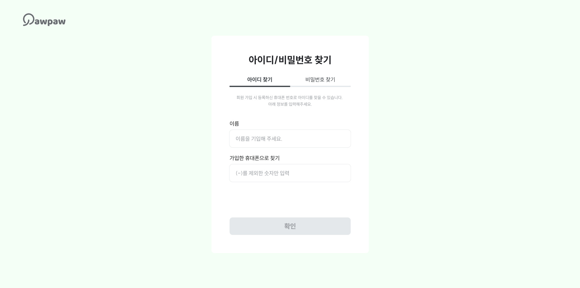 이번 프로젝트에서는 아이디찾기페이지와 비밀번호찾기페이지가 분리되어있지않고, 통합되어있었습니다.