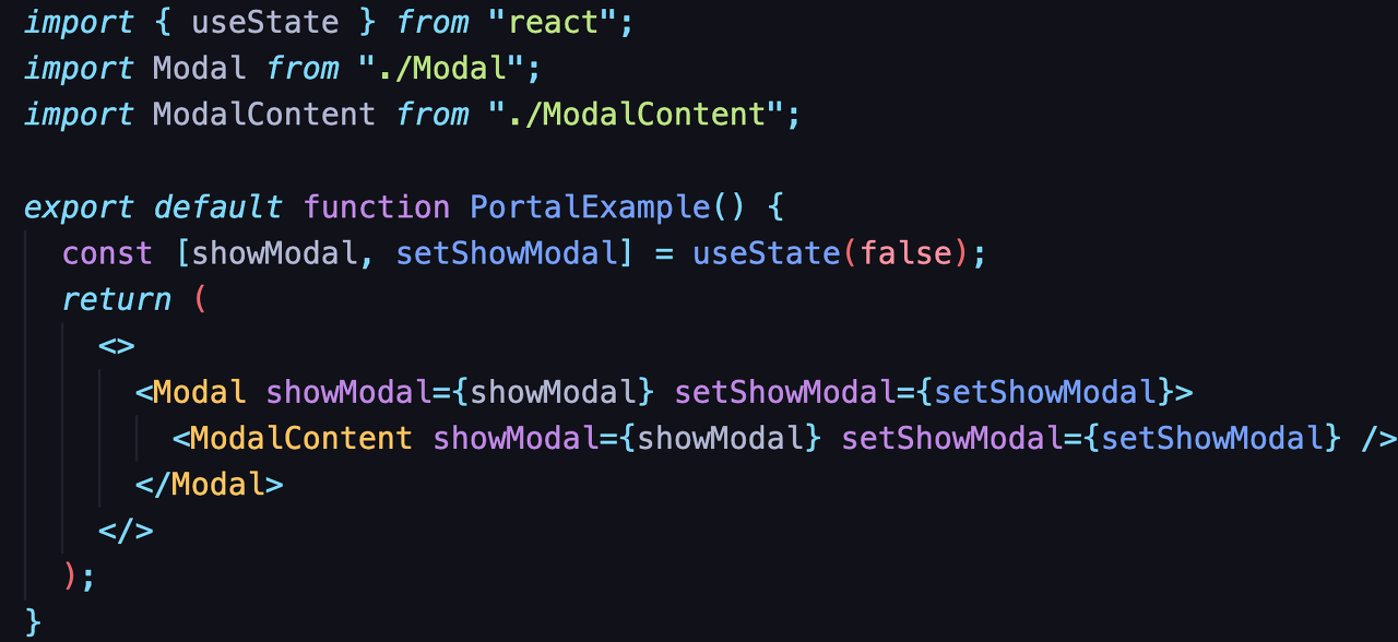 <button onClick={() => setShowModal(true)}>Show modal using a portal</button>
