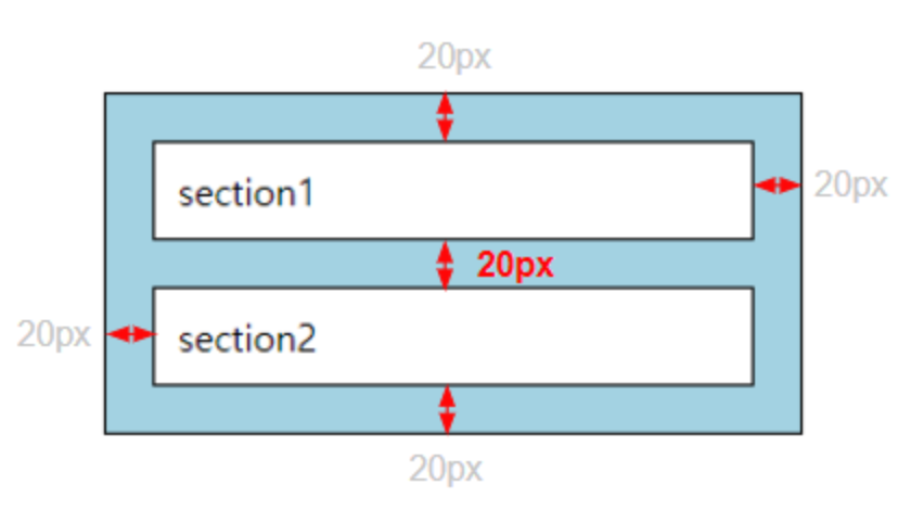 마진겹칩현상: 두개의 엘리먼트가 있고, 그 엘리먼트사이에 20px, 40px의 마진이 있다면, 도합 60px의 마진이 생기는 것이 아니라, 더 큰값의 마진이 두 엘리먼트사이의 마진값이 된다. 즉 40px의 마진값이 기준으로 잡힌다.
