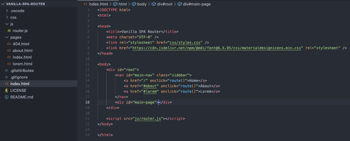 브라우저가 html, css, js 순서로 다운로드를 마치면 js/router.js 파일 내부의 로직이 시작된다.