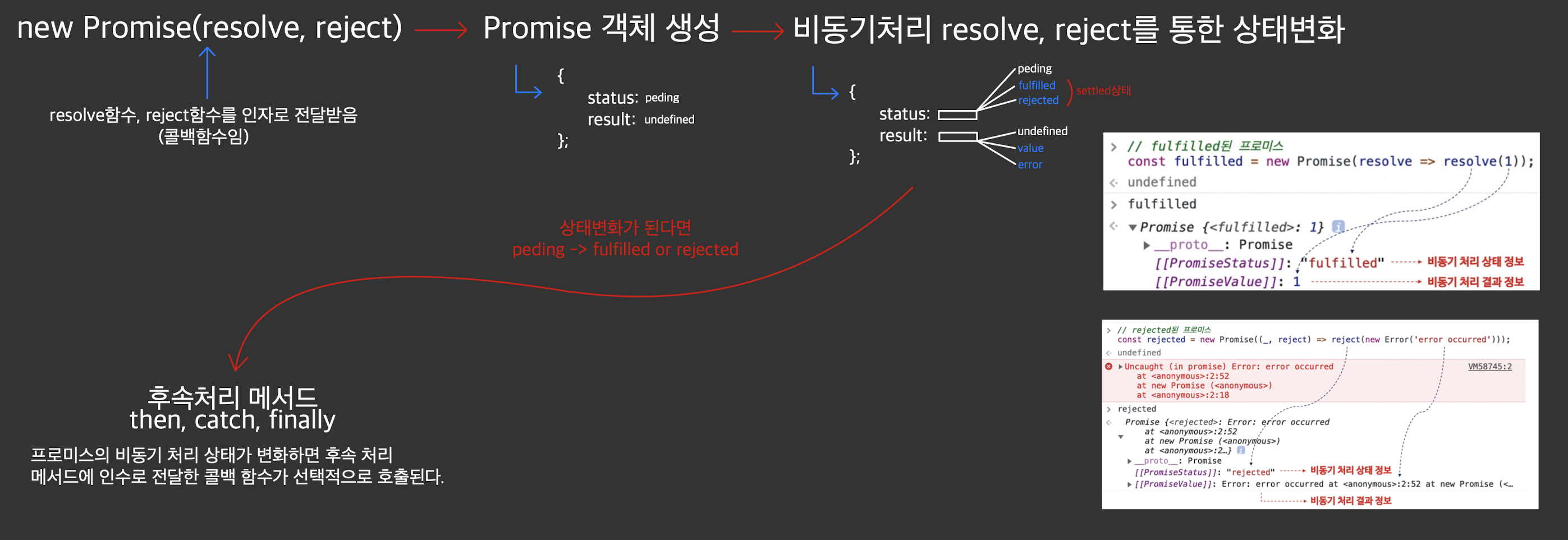 그러다 모던자바스크립트 Deep Dive책을 참고했더니 퐝! 하고 뚫렸다. 어려운 책이라 참고를 가장 늦게 했는데 오히려 비동기처리의