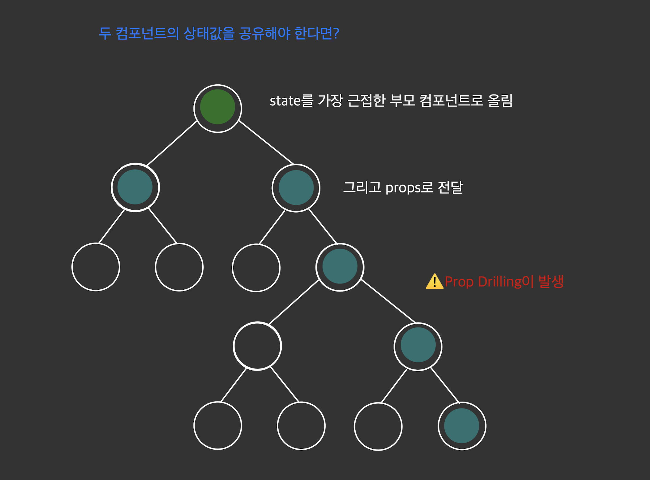 두 컴포넌트의 상태값을 공유해야한다면? 두 컴포넌트의 부모로 State를 올림 그리고 Props를 두 컴포넌트로 각각 전달